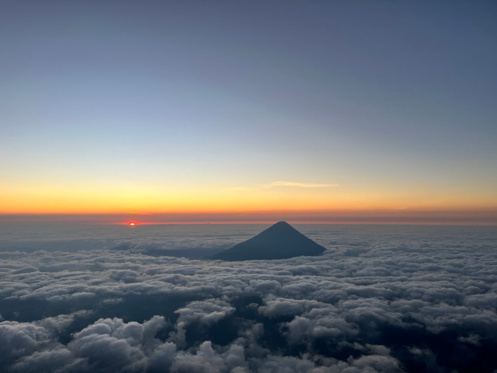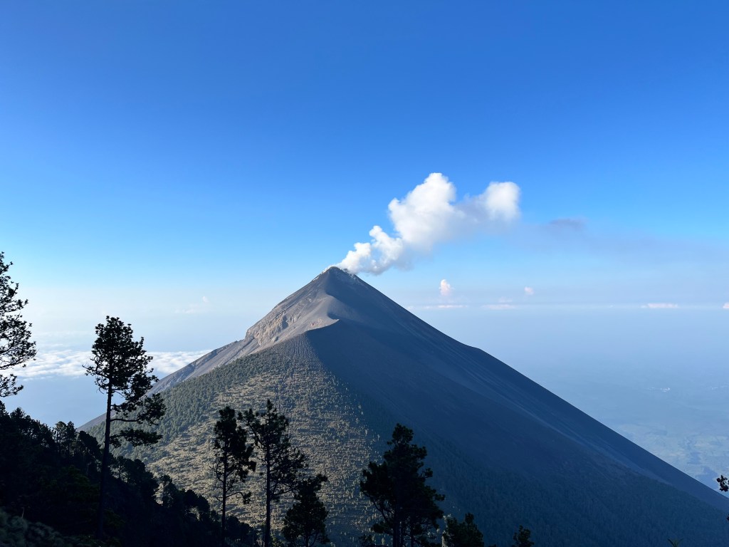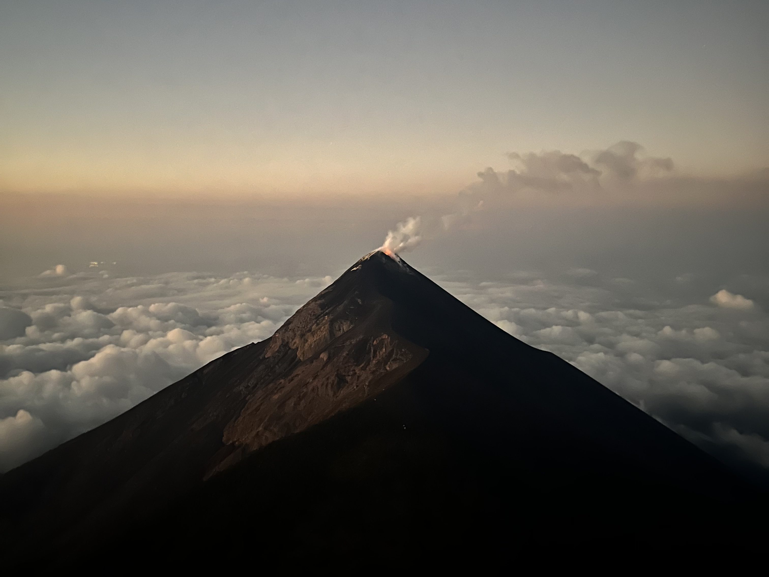 The summit view? Incredible. Totally clear skies, a sea of clouds below, and views of Fuego puffing away in the distance. You’ll want gloves for this part—your fingers will be out taking pics, and they’ll go numb fast.
